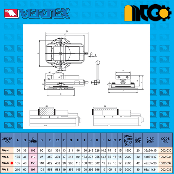 گیره مکانیکی 150 میلی متری VA-6 ورتکس تایوان