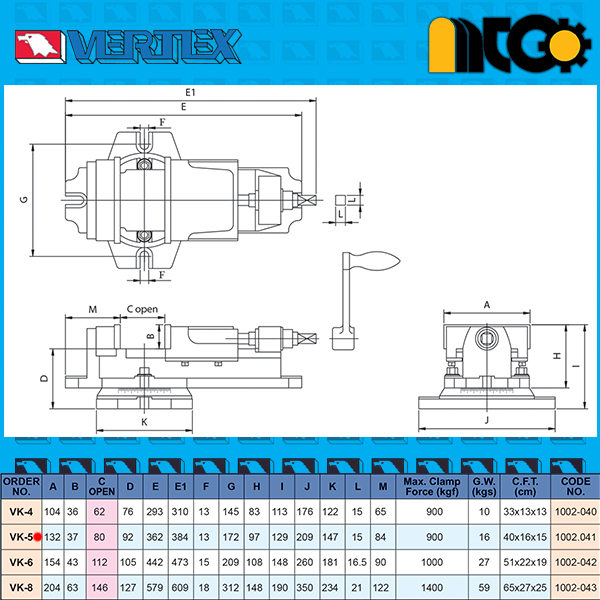 گیره مکانیکی 80میلی متری VK-5 ورتکس تایوان