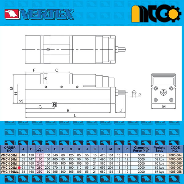 گیره دقیق 280 میلی متر VMC-200M ورتکس تایوان