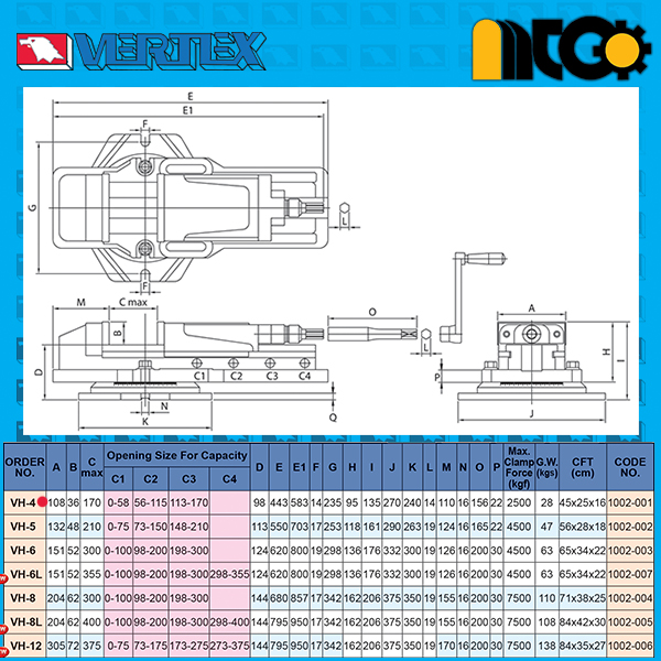 گیره هیدرولیک 170میلی متری VH-4 ورتکس تایوان