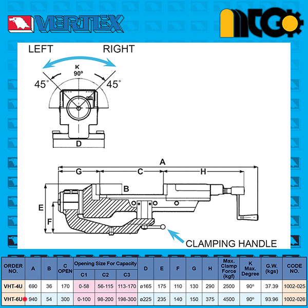 گیره هیدرولیک سینوسی یونیورسال 300MM VHT-6U ورتکس تایوان