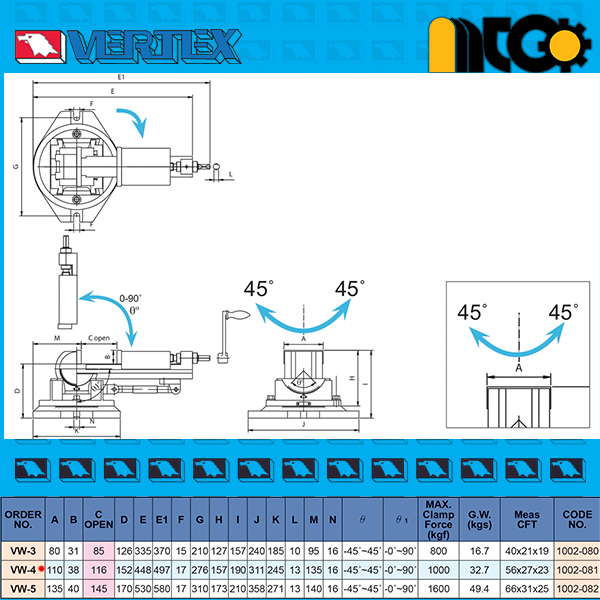 گیره سینوسی 3محور 116میلی متری VW-4 ورتکس تایوان